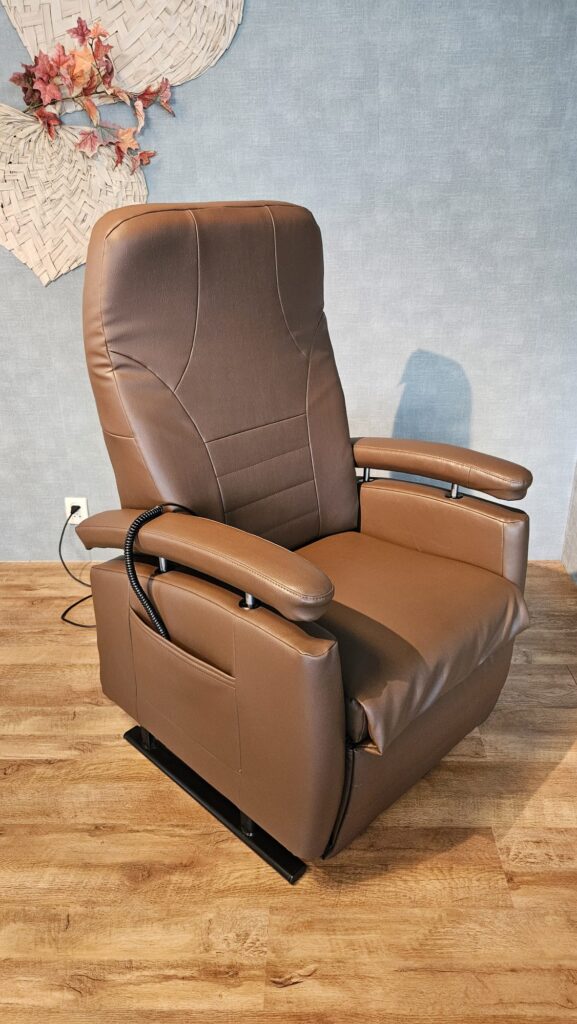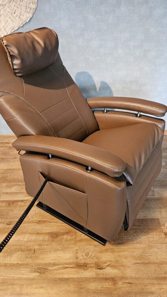 Sta op functie met rem, rug en voetenklep elektrisch verstelbaar.